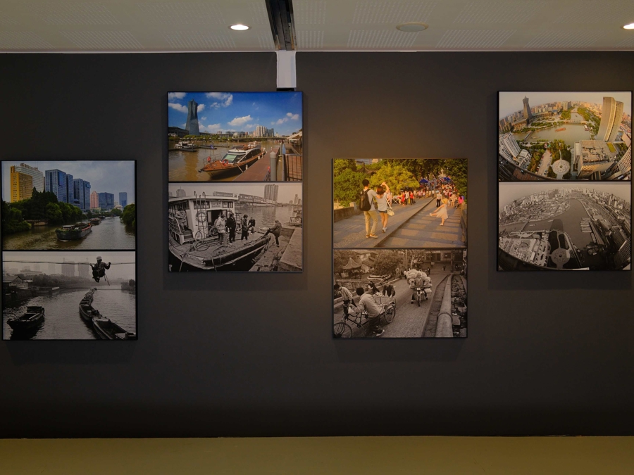 值得一提的是,本次展览特别设置了《杭州的心、城市的眼》、《流动的盛宴、世界的拱宸》、《大运河与城市共生》、《古韵今辉处、十里银湖墅》、《碧水穿城过,人家尽枕河》五幅影像长卷,以宏大的叙事视角,系统梳理并视觉化地呈现时尚拱墅和运河文化的整体风貌精神内核。它们不仅是极具视觉震撼力的艺术作品,更因其对运河沿岸历史遗迹、民俗风情、生态现状与城市发展的系统性影像记录,而成为了研究运河文化嬗变与当代城市发展不可多得的珍贵视觉文献。