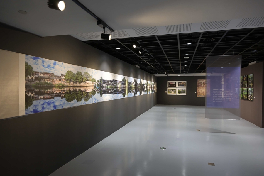 步入展厅,观众仿佛开启了一场穿越时空的视觉旅程。展览巧妙打破传统板块界限,以流畅的叙事逻辑将“宋韵今辉”“潮流地标”“产城融合”“人间烟火”“特邀镜界”“城院潮新”“流光溢彩”七大板块有机融合。
